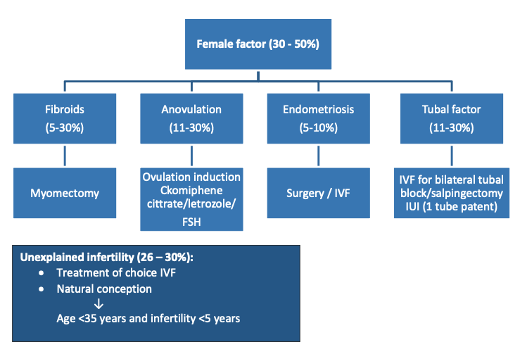 Causes of infertility are equality distributed between the sexes. So, combined factors need to evaluate.