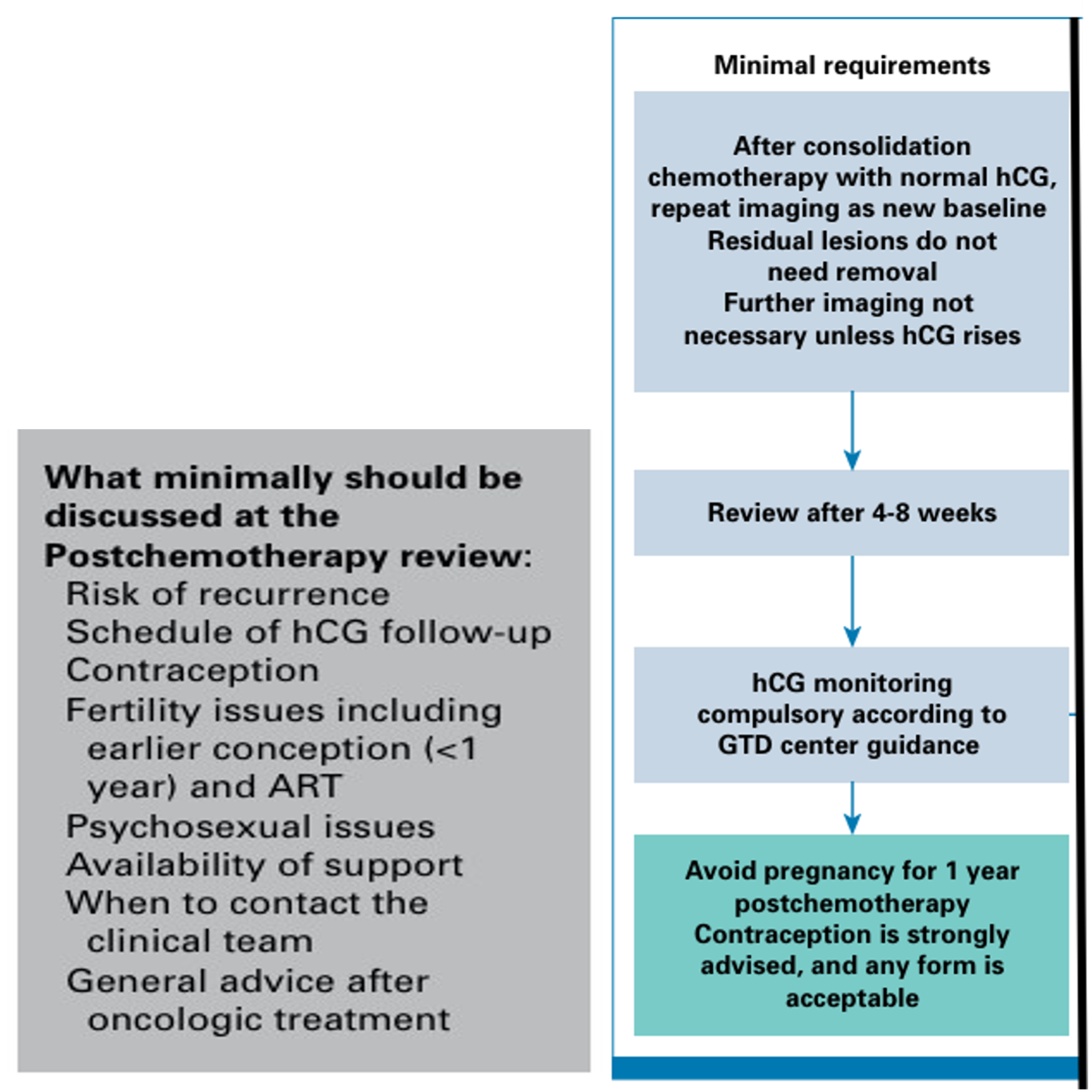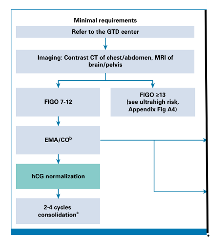 Alignment: Adapted from international guidelines (Practical Guidelines for the Treatment of Gestational Trophoblastic Disease: Collaboration of the European Organization for the Treatment of Trophoblastic Disease (EOTTD)–European Society of Gynaecologic Oncology (ESGO)–Gynecologic Cancer Intergroup (GCIG) International Society for the Study of Trophoblastic disease (ISSTD), FIGO) and contextualized to local resources, culture and health system Capacity.