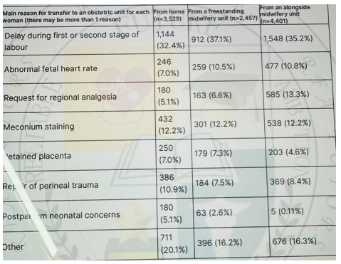 Table 1 Primary reasons for transfer to an obstetric unit by number of women transferred (% of total transferred from each setting)
