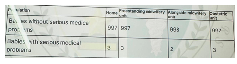 Table Low-risk multiparous women: Outcomes for the baby for each planned place of birth (by number of babies per 1,000 births)