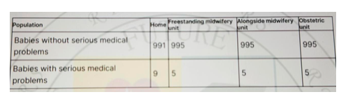 there are no differences in outcomes for the baby associated with planning birth in an alongside midwifery unit, a freestanding midwifery unit or an obstetric unit