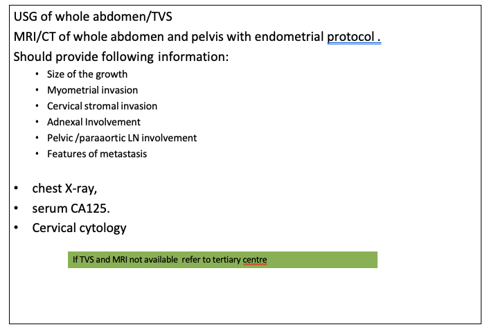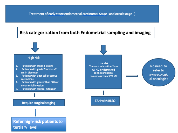 - High-risk EC should be managed by gynae-oncologist in tertiary care center