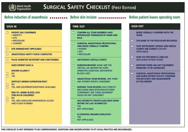 DefinitionA Surgical Safety Checklist is a tool that helps a surgical team ensure patient safety by confirming identity, site, procedure,